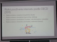 Prednáška poukazovala na riziká používania technológií a o opatrenia, ktoré vedú k celkovej odolnosti. Mgr. Lucia Macaláková z digiQ porozprávala študentom, ako si prostredníctvom manažovania môžeme zabezpečiť digitálny wellbeing (termín popisujúci dopad využívania technológií na duševné i fyzické zdravie). Pomenovanie rizík v online priestore nám pomáha ľahšie hľadať spôsoby, ako sa im vyhnúť. Lektorka uviedla, s akými hrozbami sa môžeme najčastejšie stretnúť, aká je dôležitá prevencia a aké máme možnosti riešení už vzniknutých situácií. Študentom kládla veľa otázok, napr. Koľko času trávite na internete? Viete tento čas regulovať? Čo považujete za pozitívne v online svete? A čo naopak vnímate negatívne? Kedy vlastne môžeme hovoriť o závislosti od používania internetu?