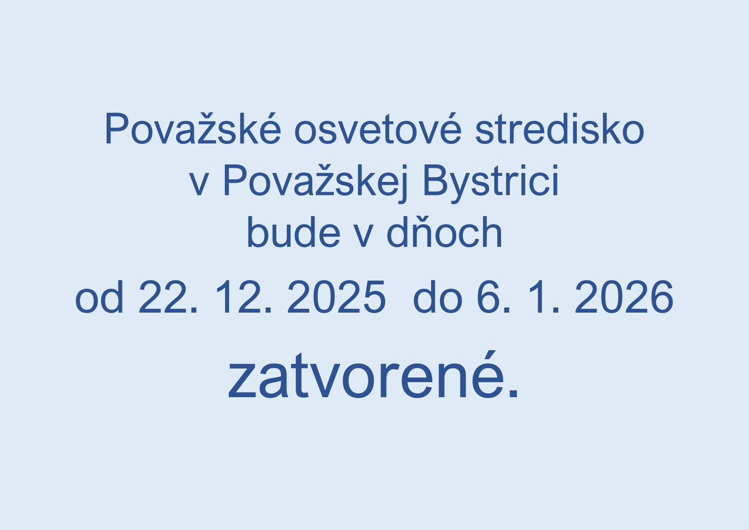 OZNAM: Považské osvetové stredisko v Považskej Bystrici bude v dňoch od 22. 12. 2025 do 6. 1. 2026 zatvorené.