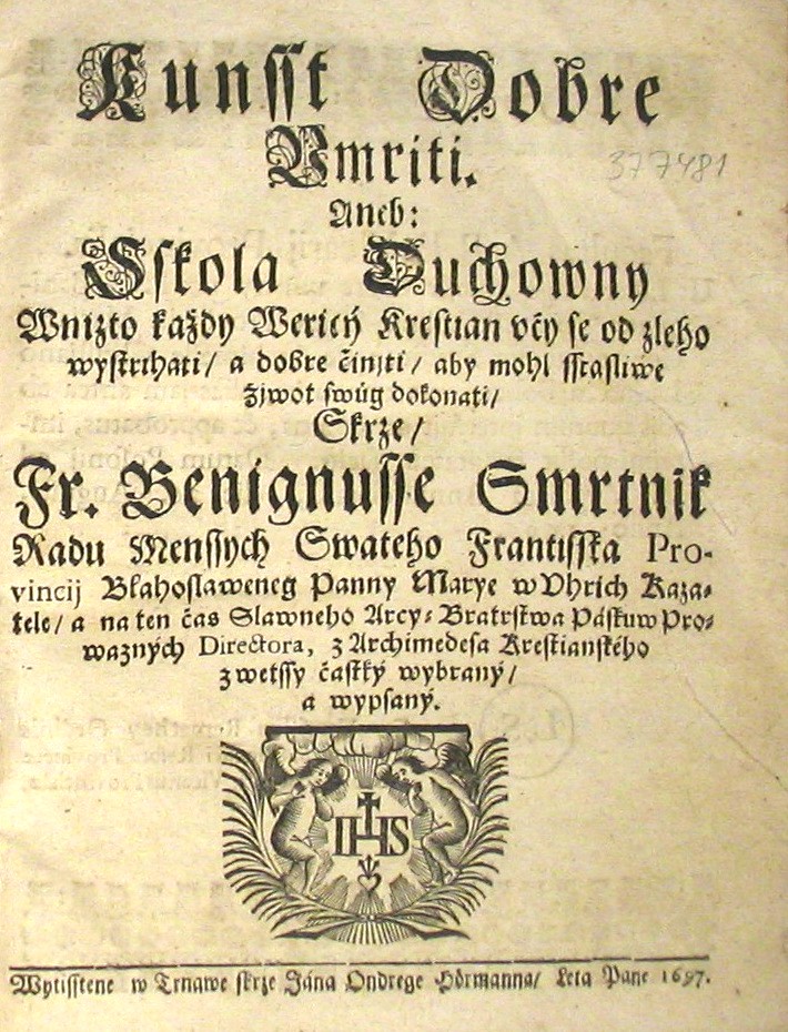 V roku 1691 sa stal autorom diela v biblickej češtine Poklad serafínsky a o šesť rokov neskôr i silne slovakizovaného nadčasového opusu Kunšt dobre umríti (1697), ktorého titulnú stranu uvádzame.