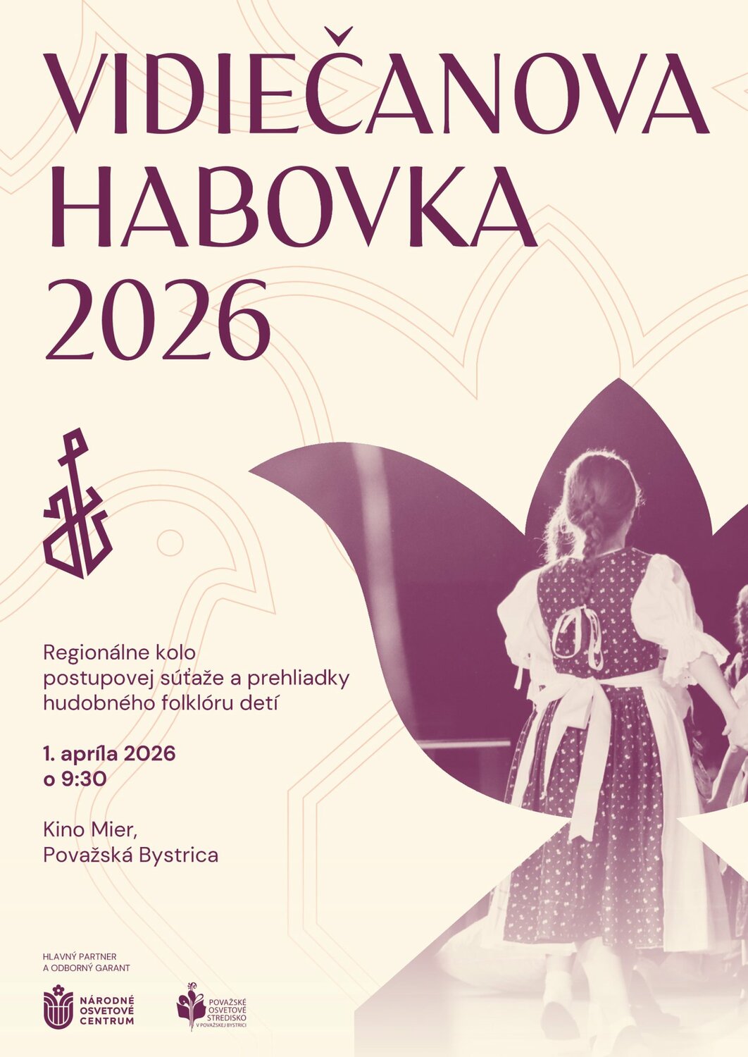 Regionálne kolo Vidiečanova Habovka 2026 sa blíži! Už o pár dní sa v Kine Mier uskutoční regionálne kolo celoštátnej postupovej súťaže hudobného folklóru detí, Vidiečanova Habovka 2026. Príďte si vypočuť detské ľudové hudby, spevácke skupiny a sólistov z nášho regiónu a povzbudiť ich v boji o postup. Tešíme sa na vás!